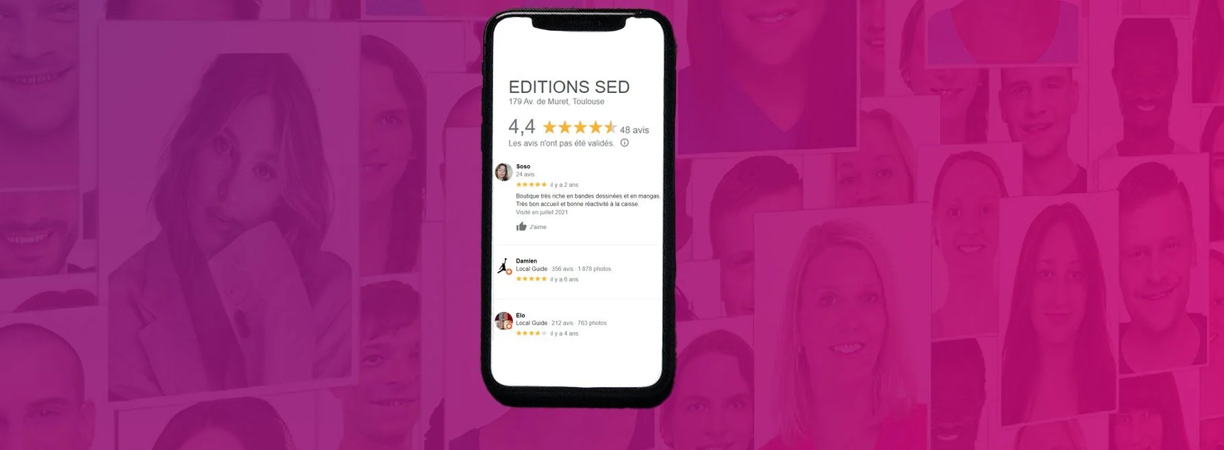 Gagnez en réactivité grâce à notre gestion hebdomadaire de vos avis Google. Nous proposons des réponses pour contrecarrer les avis négatifs et remercier ceux qui sont positifs ! Et nous éditons un QRCode spécifique qui dirige les utilisateurs directement vers votre page d’avis Google, augmentant ainsi vos chances d’être noté et favorisant le retour d’expérience.